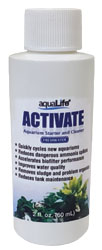 AquaLife ACTIVATE is a natural organic formulation designed to accelerate biological filtration, cycle new aquariums, improve water quality, and reduce maintenance.
