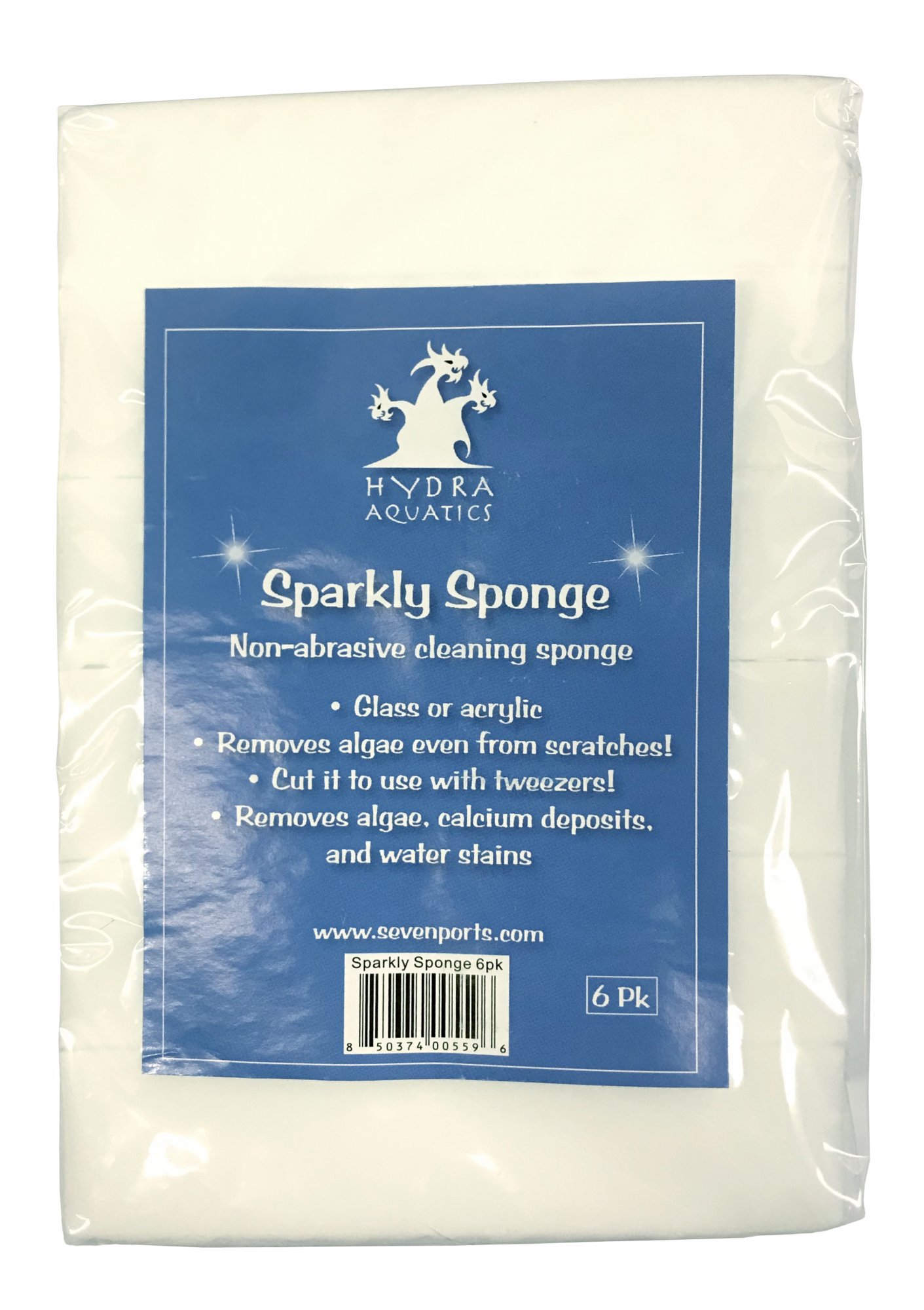 Hydra Aquatics� Sparkly Sponge is a highly durable cleaning sponge suitable for both glass and acrylic. The micro abrasive surface allows maximum algae cleaning with minimal effort, even on scratched surfaces. The chemically inert sponge does not add soaps or detergents to the tank, and the stark white color allows the user to visualize when all the algae has been removed.