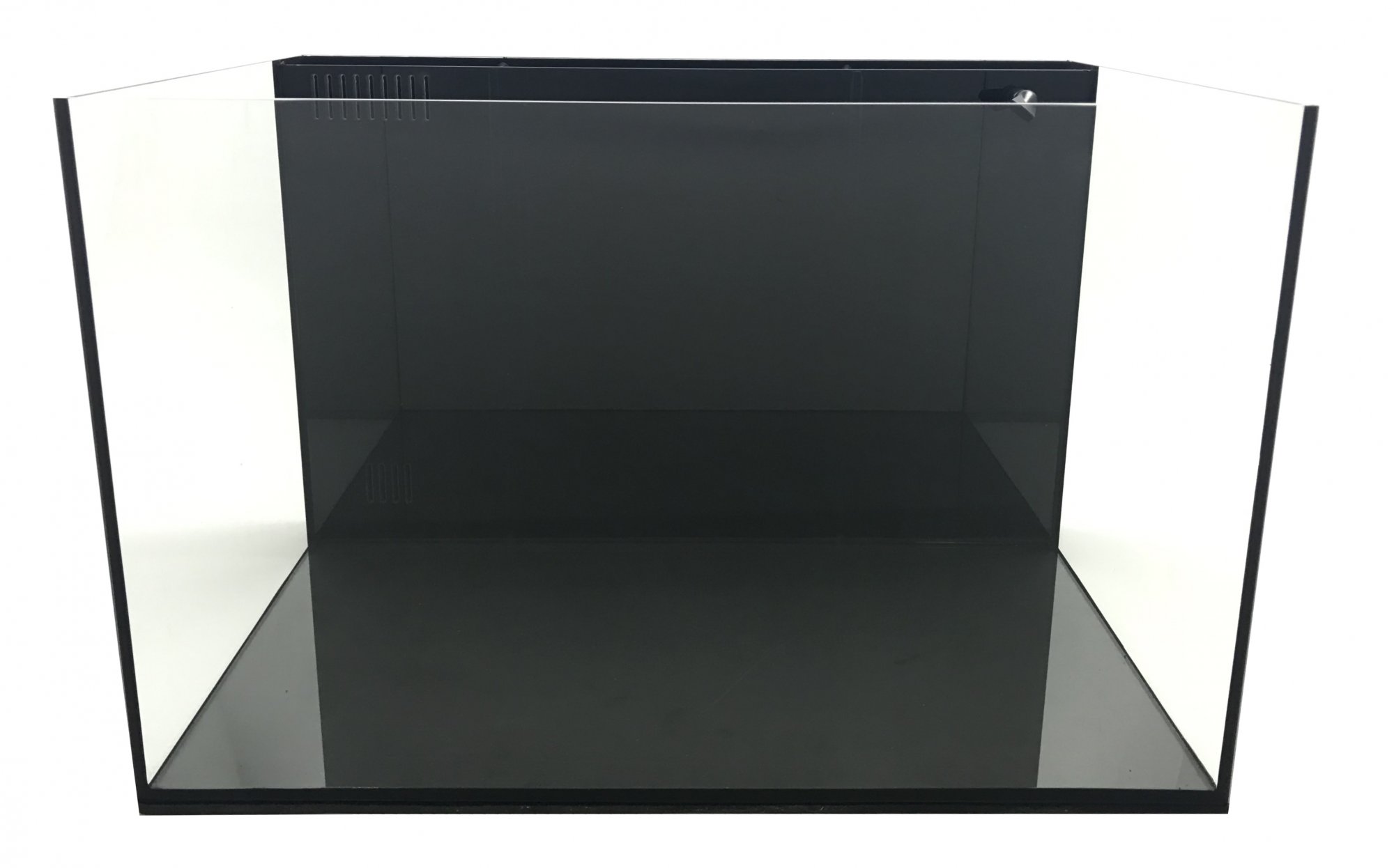 The back filter hides all of that within the footprint of the tank, all you can see from the front is a black background. The 2.5" filter extends the entire back of the tank and is divided into 3 sections that direct the water flow.