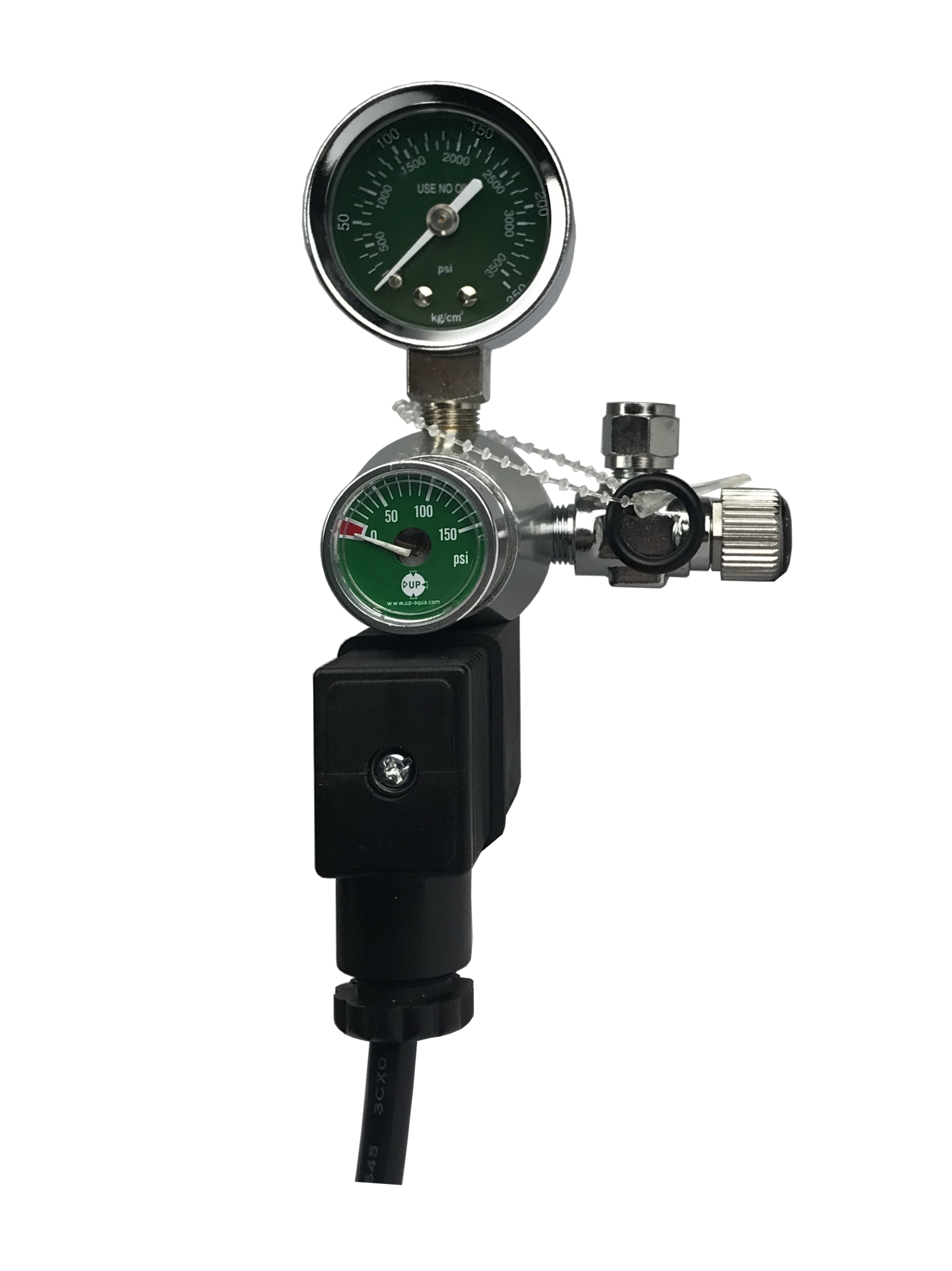 Up Aqua's Dual Gauge Regulator (CO2 Regulator with Preset Valve and 2 gauges) comes installed with a heavy duty magnetic solenoid and high precision needle valve which is required for a precise dosing of CO2 to an aquarium.