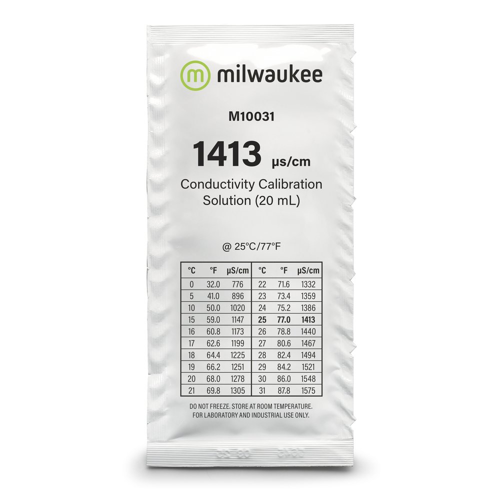 Milwaukee conductivity solutions are labeled with the lot number and expiration date and packaged in an air tight, tamper-proof sachet.