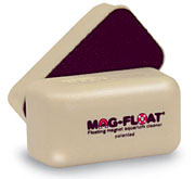 The Mag-Float revolutionary patented floating aquarium cleaner removes algae from your aquarium without getting your hands wet. Super convenient floating cleaner, cleans aquarium surfaces and floats when the inner magnet separates from the outer magnet. Because you never have to reach into the aquarium, not only can you stay clean and dry, but also avoid toxic lotions or soap residue on your skin from getting into your aquarium water. � The Mag-Float�s powerful rare earth neodymium magnets provide a lifetime durability and ample strength to get the job done. Simply move the outside magnet that contains the felt, and the inside abrasive velcro magnet scrubber follows, cleaning as it goes. If the magnets separate, the inner magnet floats right back to the surface, so you'll never have to dig around on the bottom. This prevents the magnet from picking up any debris and causing scratches on your tank. Its unique floating feature also permits easy and efficient movement around the corners of fish tanks, so you will no longer knock over decorations and damage corals and invertebrates as it happens with sinking magnet cleaners. � The neodymium magnets are covered by an injection- molded and toxic free plastic; preventing water contact with the magnet. Therefore rust will never occur allowing the Mag-Float to be left attached to your aquarium surface at all times. This makes it convenient, and practical for storage and the next cleanup job. � Your tank size, surface thickness, and shape will determine which of the 11 models will best match your tank. From as little as small betta bowls to public aquariums, glass or acrylic, Mag-Float covers the entire spectrum.