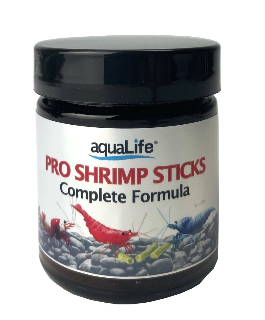AquaLife Pro Shrimp Sticks Complete Formula contains all the important nutrients, ingredients needed for color, breeding and vital ingredients that shrimp need for healthy, balanced growth. Pro Shrimp Sticks are sinking and consist of 100% natural ingredients for a biologically balanced diet for freshwater dwarf shrimp and decorator crayfish. High-quality proteins and essential amino acids from aquatic animals ensure balanced growth. Dietary fibre from various vegetables, pre- and probiotic for healthy digestion. Pro Shrimp Sticks contain Vitamins and vital ingredients from different types of algae and vegetables for a functioning metabolism. �-glucan from yeast supports the body's own defense mechanisms and immune system. Natural carotinoids promote the full development of species-specific coloring.