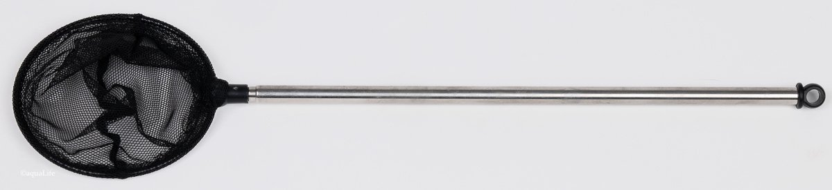 Up Aqua's round fish net works well in small or medium sized aquariums. This fish net has a stainless steel telescoping handle (up to 24"). Equipped with a ring to hook on the Up Aqua Plastic Maintenance Holder.