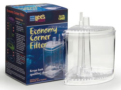 Ideal for small aquariums and aquarium kits. Lee's low-cost, high-quality Economy Corner filter keeps tanks sparkling clean without the use of an airstone. The basket insert is injection-molded to eliminate unstable tubes.