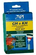 The general hardness (GH) and carbonate hardness (KH) of aquarium water should match that of the natural habitat of the fish. Otherwise, fish will be stressed and prone to disease. Since adding tap water increases the hardnessof aquarium water, frequent GH and KH testing is essential. This test kit measures the general hardness (GH), the measure of calcium and magnesium in water, and carbonate hardness (KH), the measure of carbonate and bicarbonate concentrates. Proper GH and KH levels are an important part of water quality and are necessary for the health of fish and the development and growth of aquarium plants. Maintaining good water quality is the key to successful fishkeeping. This kit helps you create the perfect water conditions with stable pH, for healthy and colorful fish and plants. The kit contains: two dropper bottles for accurate dispensing of test solutions, easy-to-read instructions, and non-staining glass test tube with snap-tight cap.