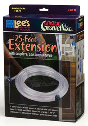 The Ultimate Gravel Vac Hose Extension comes in a length of 25' and is to be used with your Ultimate Gravel Vac Kit. The Ultimate Gravel Vac Hose Extension allows for a longer reach from your faucet to your aquarium.