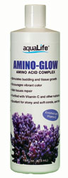 AquaLife AMINO-GLOW contains only food grade ingredients in a stable liquid form that needs no refrigeration. Amino acids are preferentially taken up by corals from the surrounding water, and are believed to play a role in the development of UV-protective pigments that impart attractive colors to many coral varieties. Regular use of AMINO-GLOW should increase overall coral health, while maintaining or improving vibrant coloration.