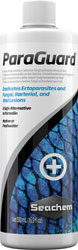 ParaGuard is the only fish and filter safe aldehyde based (10% by weight) parasite control product available. Unlike highly toxic and difficult to use formalin based medications, ParaGuard contains no formaldehyde or methanol and will not alter pH. ParaGuard employs a proprietary, synergistic blend of aldehydes, malachite green, and fish protective polymers that effectively and efficiently eradicates many ectoparasites (e.g. ich, etc.) and external fungal/bacterial/viral lesions (e.g., fin rot). It is particularly useful in hospital and receiving tanks for new fish and whenever new fish are introduced to a community tank.